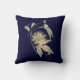 Elegant Gold Flowers on Navy Blue Floral Cushion