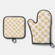Elegant gold flowers pattern white oven mitt & pot holder set