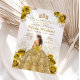 Elegant Gold Yellow Roses Gold Crown Princess Dress Mis Quince Invite
