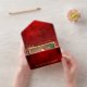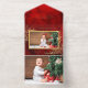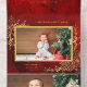 Showcase your special holiday family photo with this elegant design featuring delicate line drawn gold foil Christmas flowers and foliage against a deep ruby red artisan background. Also includes a gold foil border around the one-photo template and editable text fields. The panels feature a blank element, additional text fields and tearaway photo template.