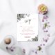 These gorgeous wedding RSVP cards feature a beautiful crimson red and gold design. The front features elegant script lettering with gold foil frills in the corners on a classic white background. The customisable form is printed in red ink, for your guests to fill out indicating whether they will attend or not, as well as the number of guests and choice of meals. There is space to enter a webpage URL so your guests can respond online if they prefer. The back is a deep marbled red colour.
