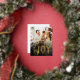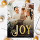 Share warmest Holiday wishes with a family photo postcard featuring the word joy in elegant typography of real gold foil on a simple transparent black photo overlay.