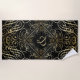 Elegant Gold Foil Look Filigree Scrollwork Black Beach Towel