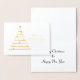Minimalist "Merry Christmas" card with Christmas tree, shiny gold foil. You may add your own message.