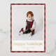 A classic and elegant Christmas card is perfect for celebrating the holidays. The front of the card has a photo and Happy Holidays script in foil.
