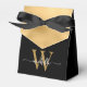 Girly Elegant Modern Simple Gold Foil Monogram Name Signature Script Custom Personalised Favour Box. This design featuring your first name in a pretty hand lettered style swash tail font signature typography (or calligraphy) with monogram initial, above faux gold colour foil block on black background. These stylish girly feminine gift boxes great for handing out, gifts, guest gifts and treats during an upcoming birthday party, BBQ, sweet 16 birthday, baby shower, bachelorette party, bridal shower, wedding reception, anniversary and more.