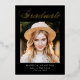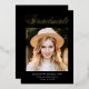 Elegant graduation announcement featuring "Graduate" displayed at the top in a gold foil calligraphy script with a black background (or color of your choice). The design features the graduate's photo with their name, school name, and graduation year shown below. The photo graduation announcement reverses to display optional text such as future plans, graduation party details, etc. The chic graduation announcement is perfect for announcing the graduation of both high school and college graduates.