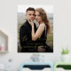 Elegant photo wedding welcome sign featuring "Welcome" displayed in a gold foil calligraphy script overlay and a vertical engagement photo. Personalise the modern wedding welcome sign with your names and wedding date in bold, gold foil lettering. The gold foil wedding sign coordinates with our Modern Elegance wedding collection.