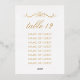 Create a beautiful gold foil table number sign with my original design. Add the table number and list the guests who will sit at that table. This is a simple way to create a guest seating chart. The design at the top with two intertwined hearts with radiating wisps create a romantic accent. I drew this design on my tablet. Add the table number for a sophisticated table number sign. On the back side is a faux gold and white table card which will add style to your table decor. This custom table number sign would be perfect for a wedding reception, an engagement party, a rehearsal dinner, or even a golden 50th wedding anniversary party. See my collection of matching items.