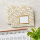 This elegant envelope has the look of a gold frame against an ivory floral wallpaper. The inside is a striking marbled paper design. Perfect for wedding invitations or holiday cards. Look for matching cards and invitations too.