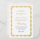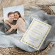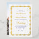 This elegant wedding invitation with the added luxury of real gold foil, features an ornate blue jewelled frame around the text, with a photo on the back. The elegant script names of the bride and groom, as well as the word “Wedding,” are printed with gold foil also. If you would like design tweaks or additional matching products, please contact me through Zazzle Chat.
