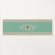 An elegant, diamond shaped gold gem with ornate frame surrounding it on a jade backdrop with a decorative tan matching border. Stunning and chic