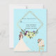 A chic and modern RSVP card featuring elegant gold foil, a geometric frame, and botanical details on a dusty blue background. Perfect for coordinating with your wedding invitation.