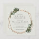 Modern boho bridal shower invitations with your event details inside of a gold geometric frame surrounded by greenery and white flowers. A botanical design that is perfect for a bohemian celebration in the summer. Frame courtesy of: <a href="http://www.freepik.com">Designed by Freepik</a>