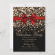 Elegant Gold Glam Red Bow Christmas Party Invitation
