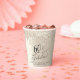 Chic personalised 60th birthday party paper cups featuring "60 & Fabulous" in a calligraphy script against a gold background with gold faux glitter drips.