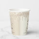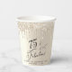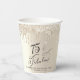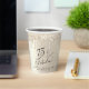 Chic custom paper cups for her 75th birthday party featuring "75 & Fabulous" in an elegant calligraphy script on a champagne gold background with gold faux glitter drips.