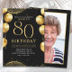 Elegant Gold Glitter Birthday 80th with Ballons Invitation