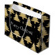 elegant gold glitter Christmas tree pattern black Large Gift Bag