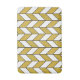 This modern bath mat features an elegant chevron design with a geometric herringbone pattern in white and faux gold glitter with black lines.