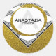 Serve up some goodies in a favour bag or seal the mail with this elegant sticker. This black and white zig zag striped pattern sets off the top of this sticker featuring a gold glitter calligraphy circle with name and initial letter monogram text over a gold glitter bottom. Fill in the template fields or click customise to select a typeface style, size, and colour you like.