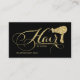 Elegant Gold Glitter Script Hair Stylist Professional Business Cards.