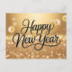 Celebrate the arrival of the New Year in style with this glamorous and festive holiday postcard. This design features a stunning, high-quality gold glitter and bokeh sparkle background that radiates elegance and joy. The center displays a beautiful cursive "Happy New Year" message in a stylish script font with a clean white outline for perfect readability.