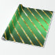 Elegant Gold Green Diagonal Stripes Pattern Wrapping Paper