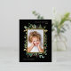 Elegant Gold Greenery | Black with Photo Foil Holiday Postcard