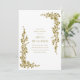 This bridal shower invitation features an elegant gold greenery frame with a refined, timeless layout. Delicate botanical borders surround the centred text, creating a graceful and polished look for a formal celebration. The neutral colour palette pairs beautifully with classic venues, evening gatherings, and sophisticated bridal events.
