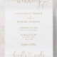 All in one gold wedding invitation featuring elegant hearts script typography and monogram initials. The invitation includes a perforated RSVP card with your personalised wedding QR code. Designed by Thisisnotme©