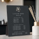 Elegant plaque with easel displays your salon services or price list in classic white lettering on a rich soft black background adorned with a tropical faux gold foil hibiscus flower illustration. Includes three customizable headings and body text fields. To adjust layout, enter your text and then use the Customize function to change positioning and font sizes.