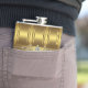 Beautiful gold flask. You can add text and change the background colour on this elegant gold liquor flask. This custom designed liquor flask makes a great gift and is easily customised.