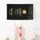 A housewarming party open house banner with a simple image of a gold gradient house on a black background. Faux gold foil confetti along the top. Elegant minimalist design.