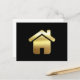 A postcard with a simple image of a gold gradient house on a black background. Elegant minimalist design.