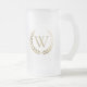Elegant Gold Laurel Wreath Monogram Frosted Glass Beer Mug