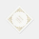 These custom paper napkins will add a touch of elegance to your wedding reception place settings. This chic design template features a faux gold leaf border with your names and date in a classic Garamond font to personalise. Please check out our I Love Weddingz shop to find more selections in this collection. Designed by artist Susan Coffey.