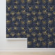 Elegant wallpaper featuring gold gingko leaves scattered on a dark purple background.