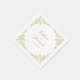 These custom paper napkins will add a touch of elegance to your wedding reception place settings. This chic design template features a faux gold leaf border with your names in modern faux gold script and wedding date to personalise. Please check out our I Love Weddingz shop to find more selections in this collection. Designed by artist Susan Coffey.