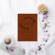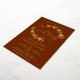 These beautiful wedding invitations feature real pressed foil on a rust orange or burnt umber coloured background. The elegant design features sprigs of wistful leaves and modern script lettering for a style that is both rustic and classy.