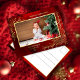 Showcase your special holiday family photo with this elegant design featuring delicate gold foil line drawn Christmas flowers and foliage against a deep ruby red artisan background. Also includes a gold foil border around the one-photo template and editable text fields.