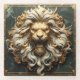 This magnificent gold lion is designed with precision and elegance. Its dynamic mane flows with lifelike movement, highlighting its regal nature. The emerald and marble background adds depth and richness, symbolising power, authority, and grandeur.