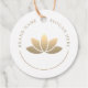 Bring a touch of serenity and sophistication to your brand with this elegant lotus flower favour tag. Featuring a gold faux foil lotus design on a crisp white background, it’s perfect for yoga studios, holistic wellness brands, handmade products, or spa gifts. Customise with your brand name and slogan to leave a lasting impression on your customers.