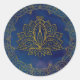 Elegant Gold Lotus flower on blue Classic Round Sticker