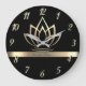 Elegant Gold Lotus, Yoga Black Large Clock