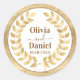 Elegant Gold Marble & Wreath Personalised Wedding Classic Round Sticker