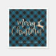 Elegant Gold Merry Christmas Black & Blue Plaid Napkin