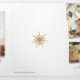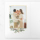 Elegant and unique 3-photo holiday floral design featuring corner bouquets of watercolor style white poinsettia, holly and pine with gold sparkles. Includes flowing Merry Christmas greeting in decorative script and an editable text field. The panels also feature additional photo templates, text fields and complementary floral graphic.