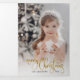 Simple and elegant holiday greeting featuring your photo with an opaque white filter, faux gold glitter custom Merry Christmas calligraphy script and editable text fields.