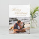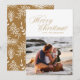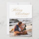 Merry Christmas Script in golden, wishing your loved ones in style. Your photo on the back or current backing pattern. Traditional Calligraphy style. Gold.